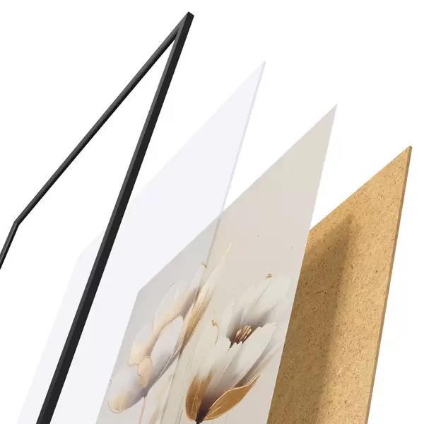 Постер складається з рами, оргскла, надрукованого зображення та підкладки з ДСП. Завдяки кріпленням на звороті плакат можна одразу ж повісити на стіну.