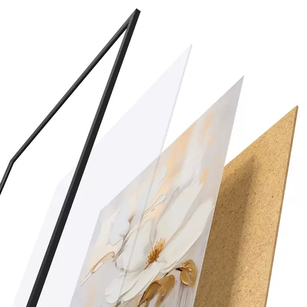 Постер складається з рами, оргскла, надрукованого зображення та підкладки з ДСП. Завдяки кріпленням на звороті плакат можна одразу ж повісити на стіну.