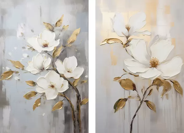 Постер на стіну Дві білі квітки з жовто-помаранчевим листям на світлому фоні Nr d00687