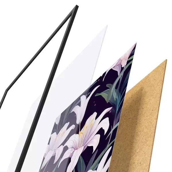 Постер складається з рами, оргскла, надрукованого зображення та підкладки з ДСП. Завдяки кріпленням на звороті плакат можна одразу ж повісити на стіну.