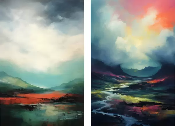 Постер на стіну Абстрактний пейзаж з хмарами в бірюзово-червоних тонах Nr d00691