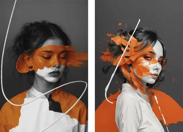 Постер на стіну Портрети дівчат з абстрактними помаранчевими мазками Nr d00693