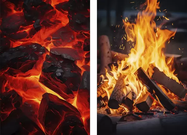 Постер на стіну Палаюче вугілля та полум'я вогню в темряві Nr d00696