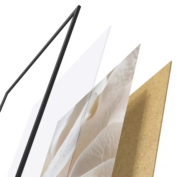 Постер складається з рами, оргскла, надрукованого зображення та підкладки з ДСП. Завдяки кріпленням на звороті плакат можна одразу ж повісити на стіну.