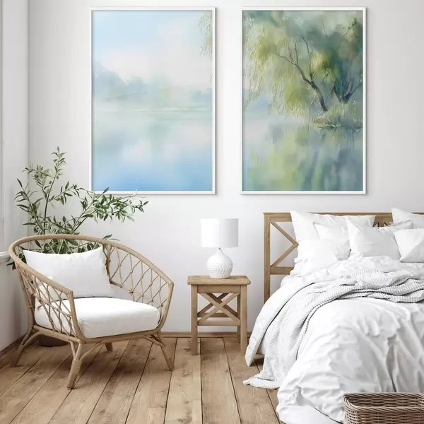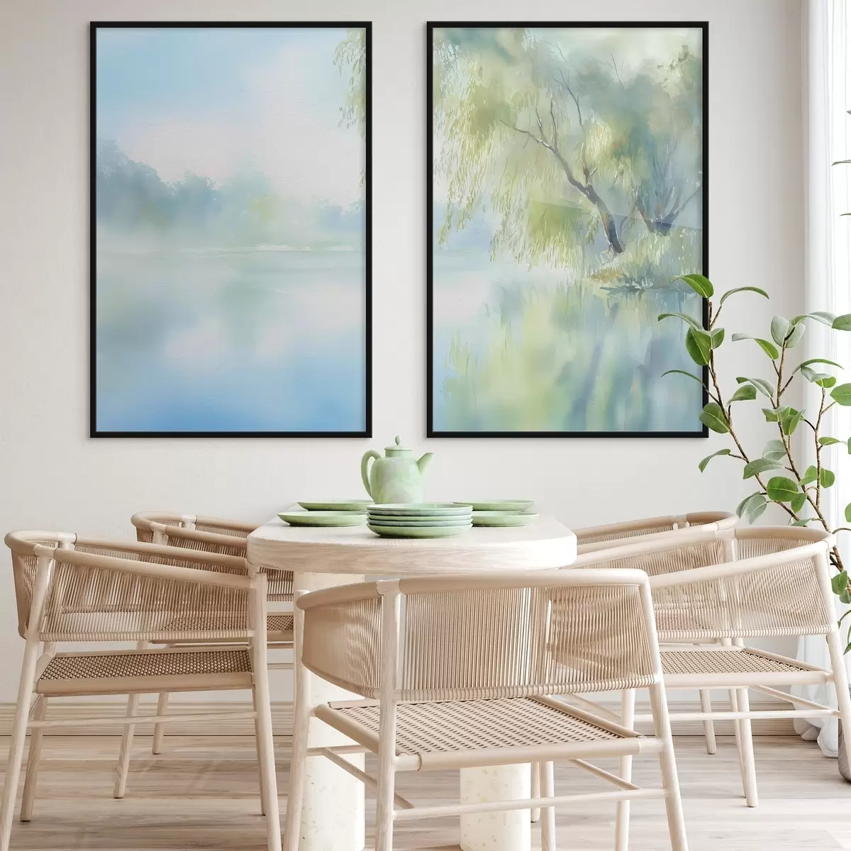 Постер на стіну верба на березі озера в акварельному стилі Nr d00702