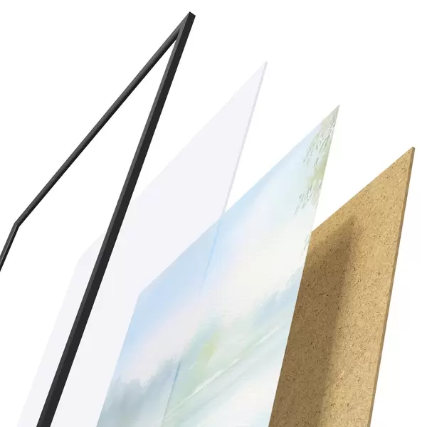 Постер складається з рами, оргскла, надрукованого зображення та підкладки з ДСП. Завдяки кріпленням на звороті плакат можна одразу ж повісити на стіну.