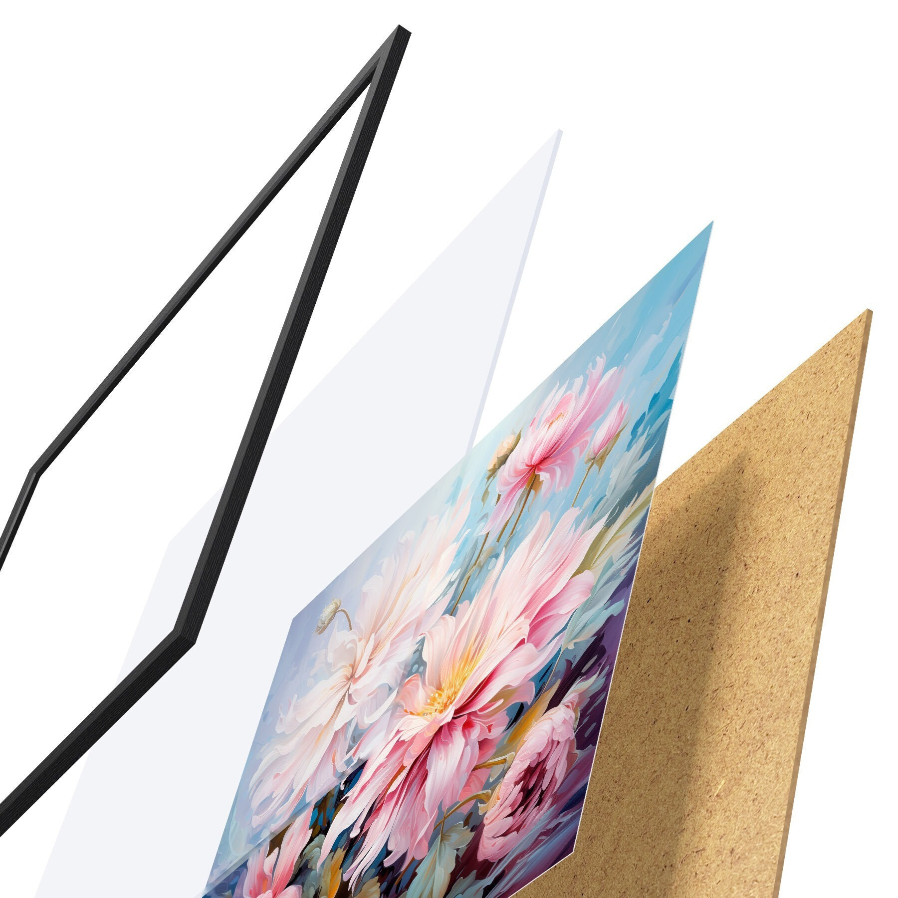 Постер складається з рами, оргскла, надрукованого зображення та підкладки з ДСП. Завдяки кріпленням на звороті плакат можна одразу ж повісити на стіну.