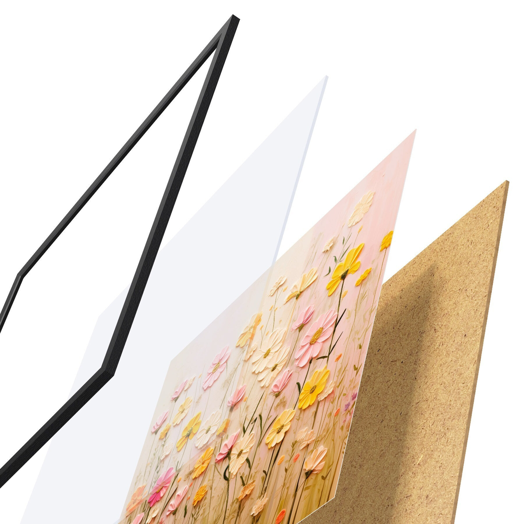 Постер складається з рами, оргскла, надрукованого зображення та підкладки з ДСП. Завдяки кріпленням на звороті плакат можна одразу ж повісити на стіну.