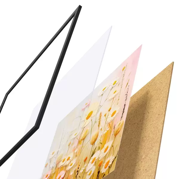 Постер складається з рами, оргскла, надрукованого зображення та підкладки з ДСП. Завдяки кріпленням на звороті плакат можна одразу ж повісити на стіну.