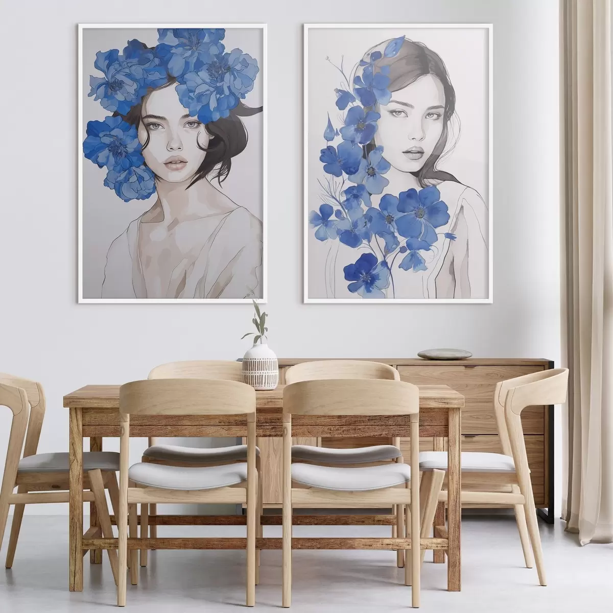 Постер на стіну Портрет дівчини з блакитними квітами Nr d00721