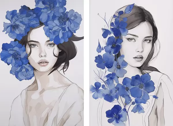 Постер на стіну Портрет дівчини з блакитними квітами Nr d00721
