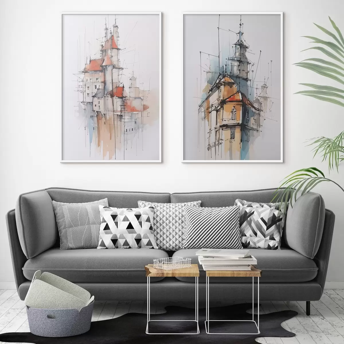 Постер на стіну Будинки імітація ескіз і акварель Nr d00725