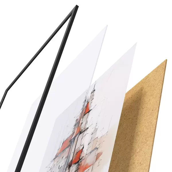 Постер складається з рами, оргскла, надрукованого зображення та підкладки з ДСП. Завдяки кріпленням на звороті плакат можна одразу ж повісити на стіну.