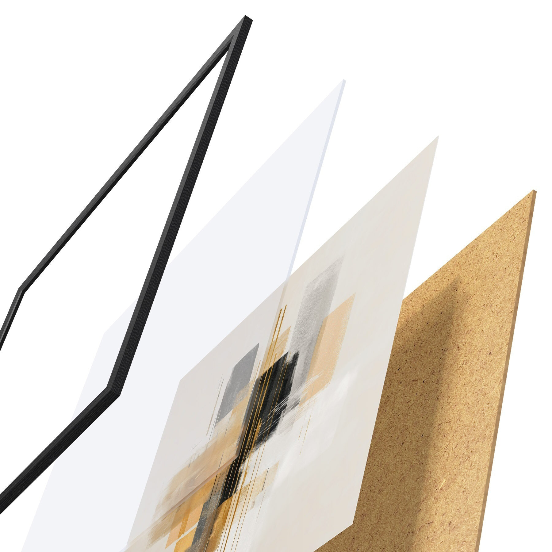Постер складається з рами, оргскла, надрукованого зображення та підкладки з ДСП. Завдяки кріпленням на звороті плакат можна одразу ж повісити на стіну.
