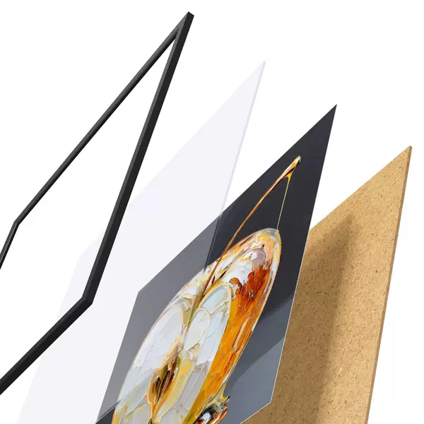 Постер складається з рами, оргскла, надрукованого зображення та підкладки з ДСП. Завдяки кріпленням на звороті плакат можна одразу ж повісити на стіну.