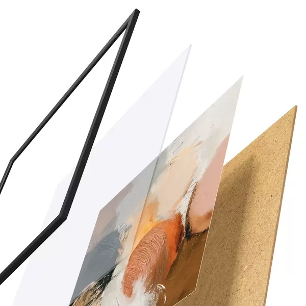 Постер складається з рами, оргскла, надрукованого зображення та підкладки з ДСП. Завдяки кріпленням на звороті плакат можна одразу ж повісити на стіну.