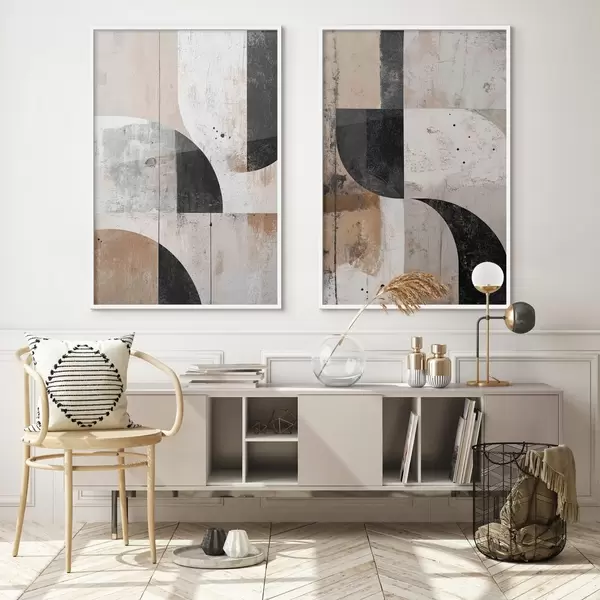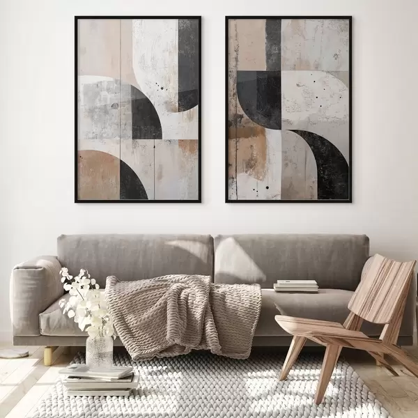Постер на стіну Геометричні фігури в бежевих і чорних відтінках Nr d00750
