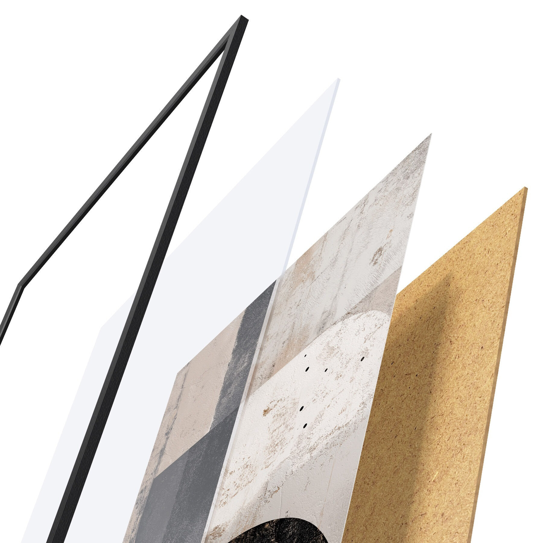 Постер складається з рами, оргскла, надрукованого зображення та підкладки з ДСП. Завдяки кріпленням на звороті плакат можна одразу ж повісити на стіну.