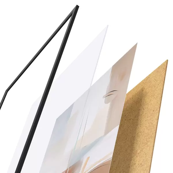 Постер складається з рами, оргскла, надрукованого зображення та підкладки з ДСП. Завдяки кріпленням на звороті плакат можна одразу ж повісити на стіну.
