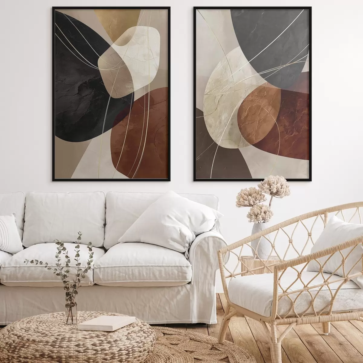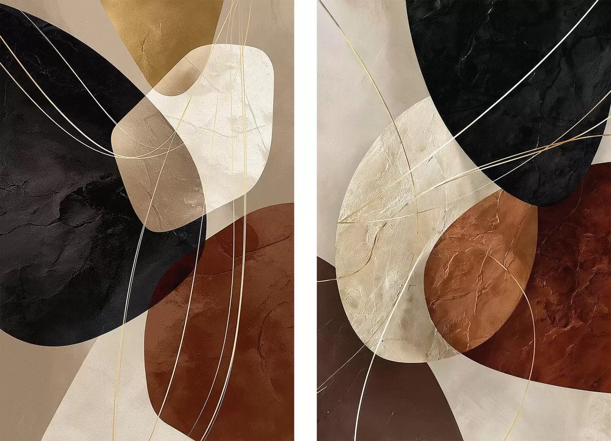Постер на стіну Геометричні овали в теплій палітрі з жовтими лініями Nr d00763
