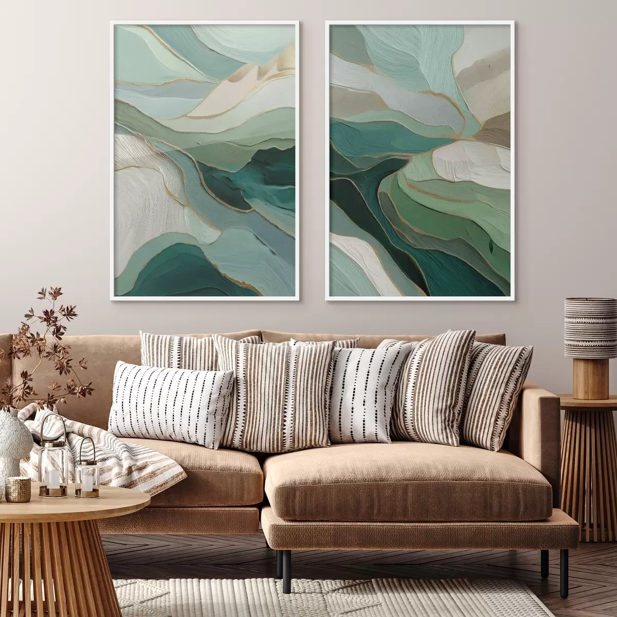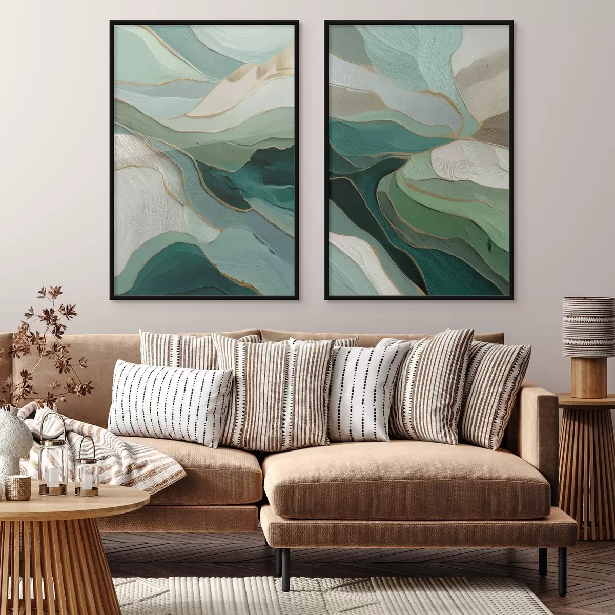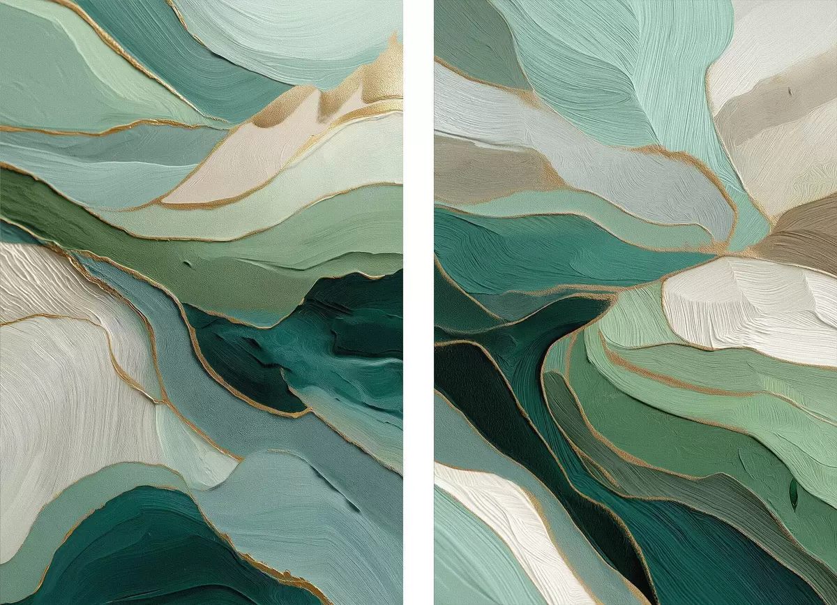 Постер на стіну Смарагдова багатошарова абстракція з жовтим контуром Nr d00766