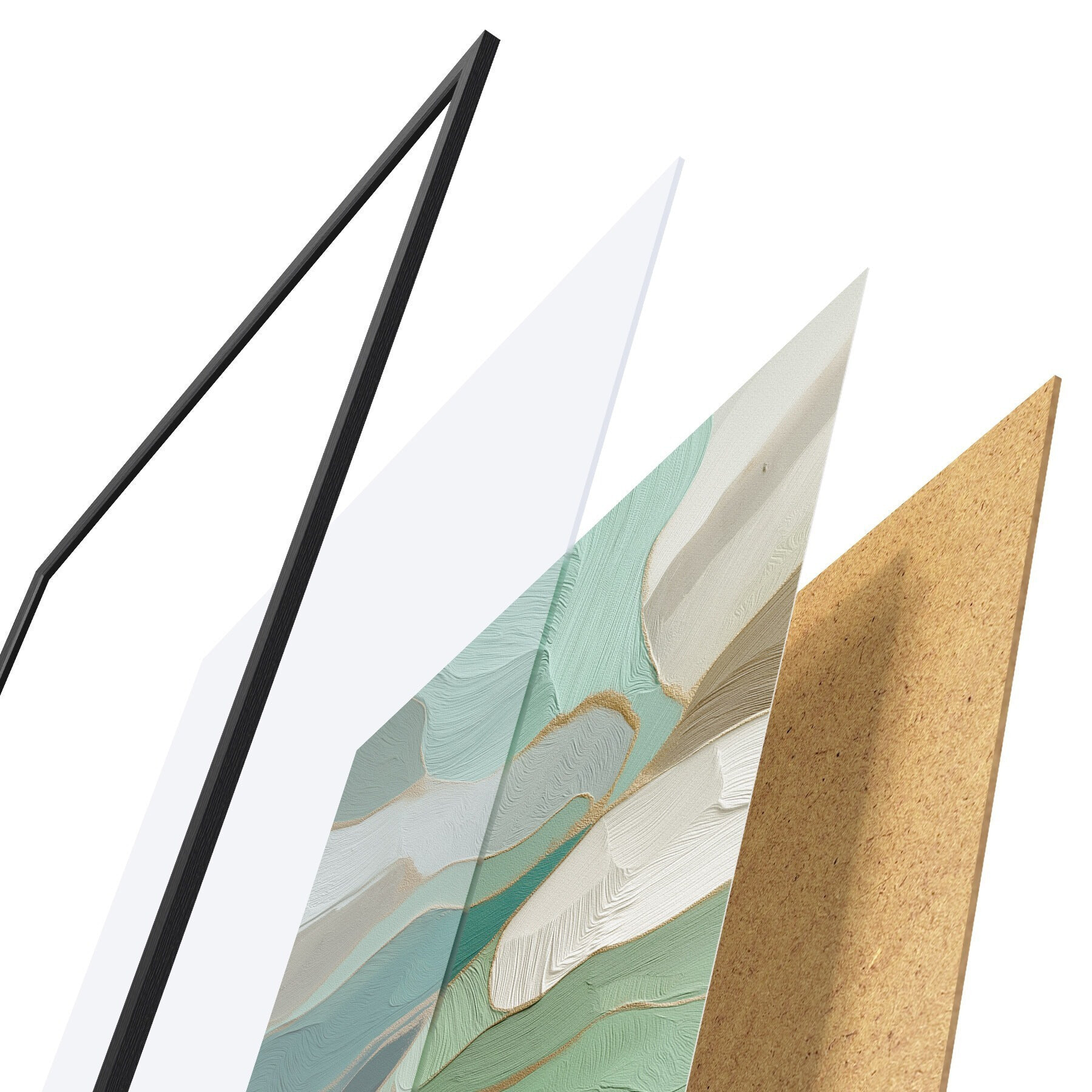 Постер складається з рами, оргскла, надрукованого зображення та підкладки з ДСП. Завдяки кріпленням на звороті плакат можна одразу ж повісити на стіну.