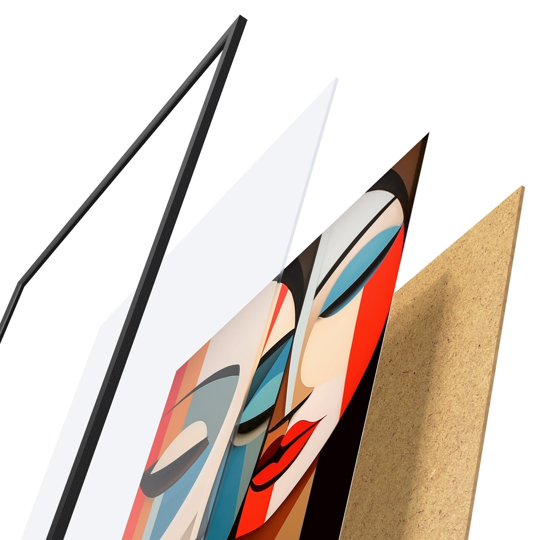 Постер складається з рами, оргскла, надрукованого зображення та підкладки з ДСП. Завдяки кріпленням на звороті плакат можна одразу ж повісити на стіну.