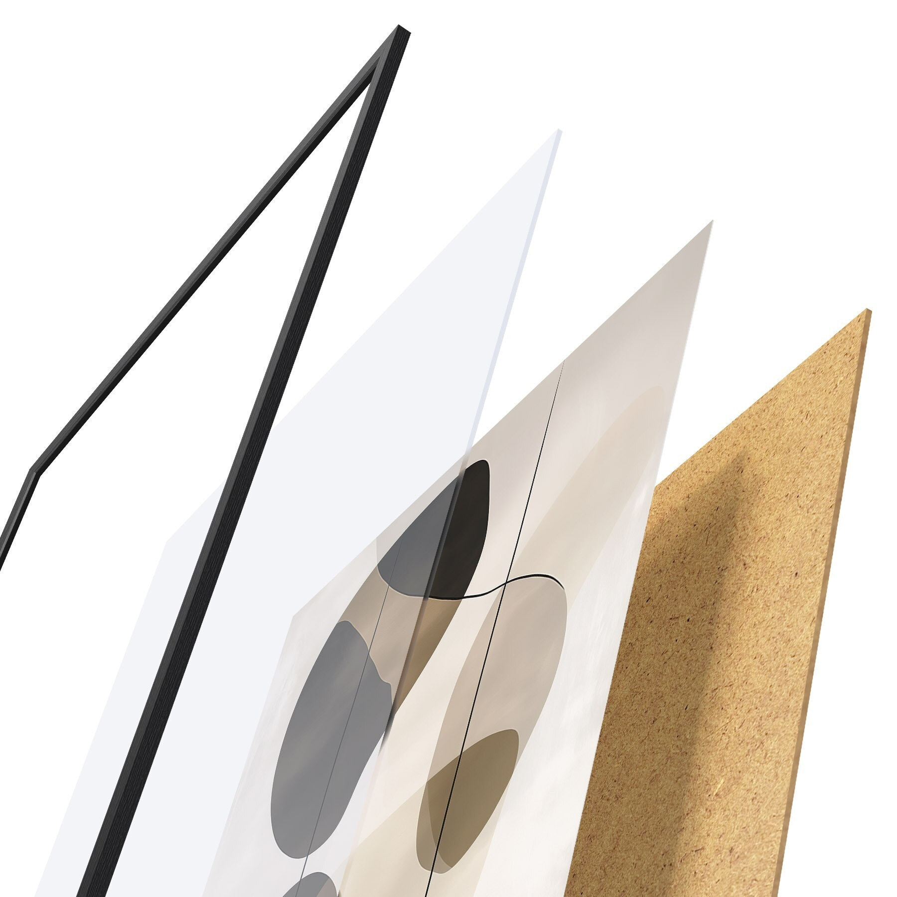 Постер складається з рами, оргскла, надрукованого зображення та підкладки з ДСП. Завдяки кріпленням на звороті плакат можна одразу ж повісити на стіну.