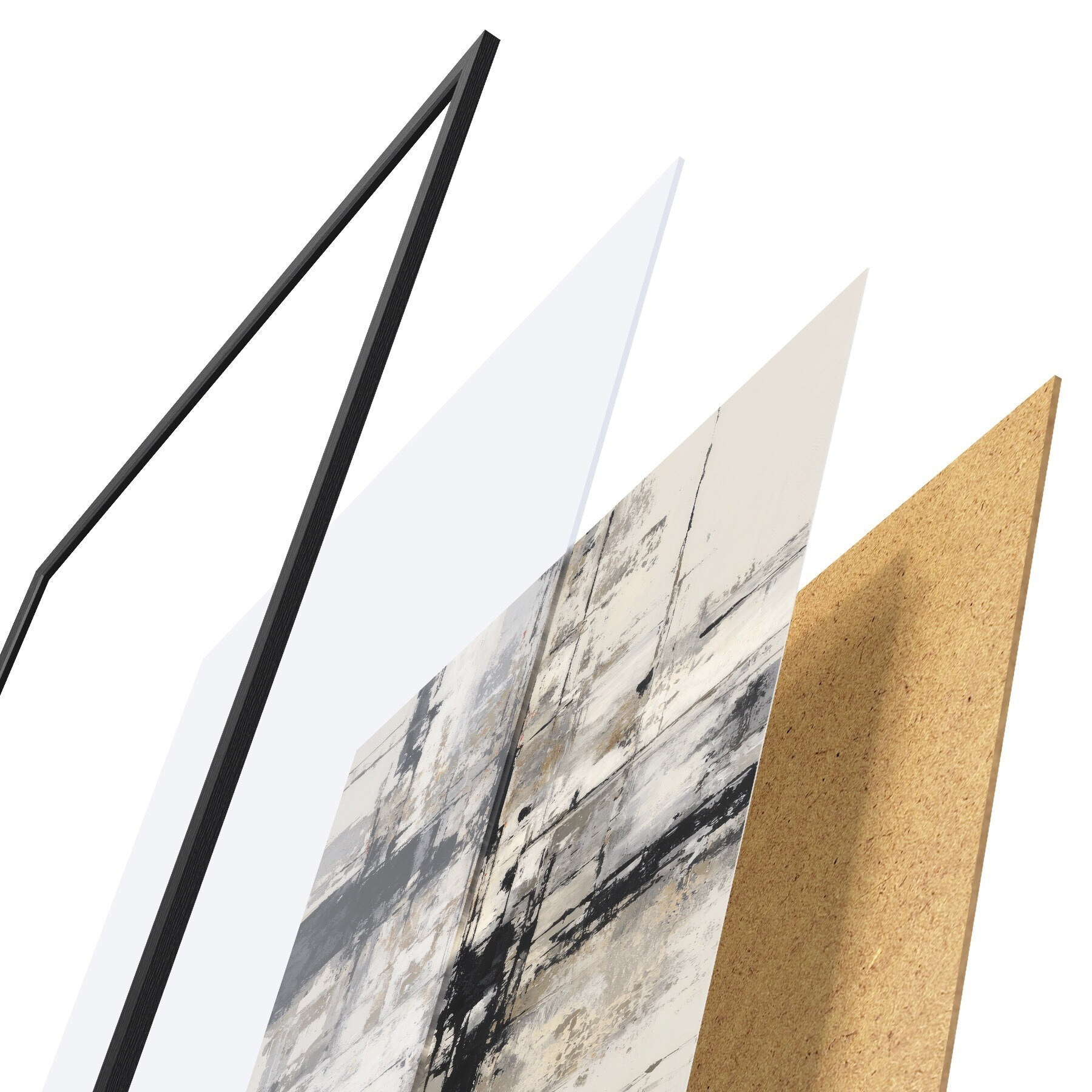 Постер складається з рами, оргскла, надрукованого зображення та підкладки з ДСП. Завдяки кріпленням на звороті плакат можна одразу ж повісити на стіну.