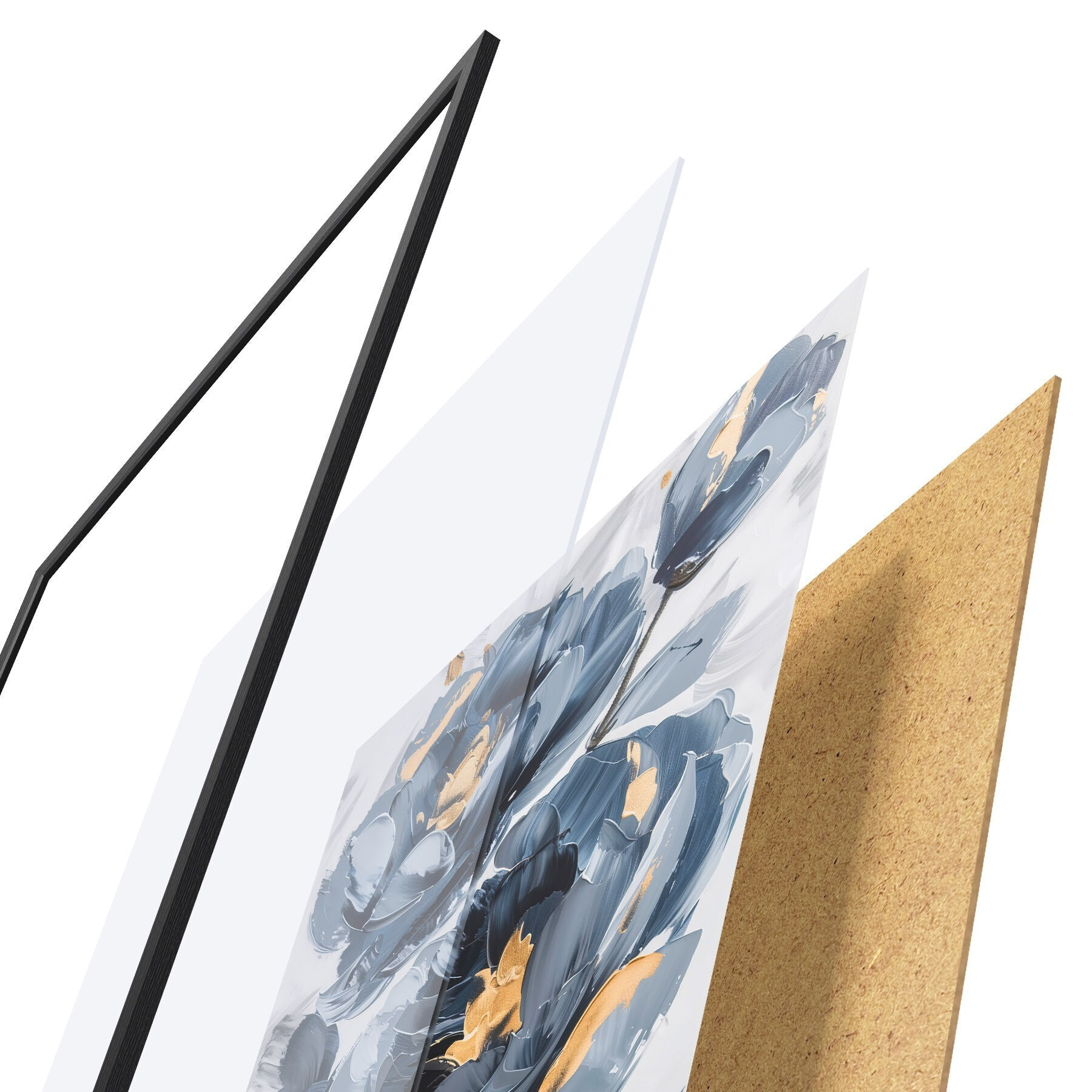 Постер складається з рами, оргскла, надрукованого зображення та підкладки з ДСП. Завдяки кріпленням на звороті плакат можна одразу ж повісити на стіну.