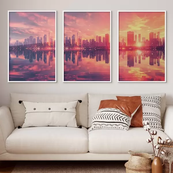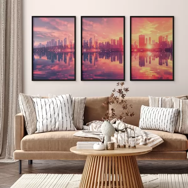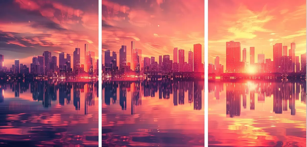 Постер на стіну Романтичний захід сонця на тлі сучасного міста Nr d00784