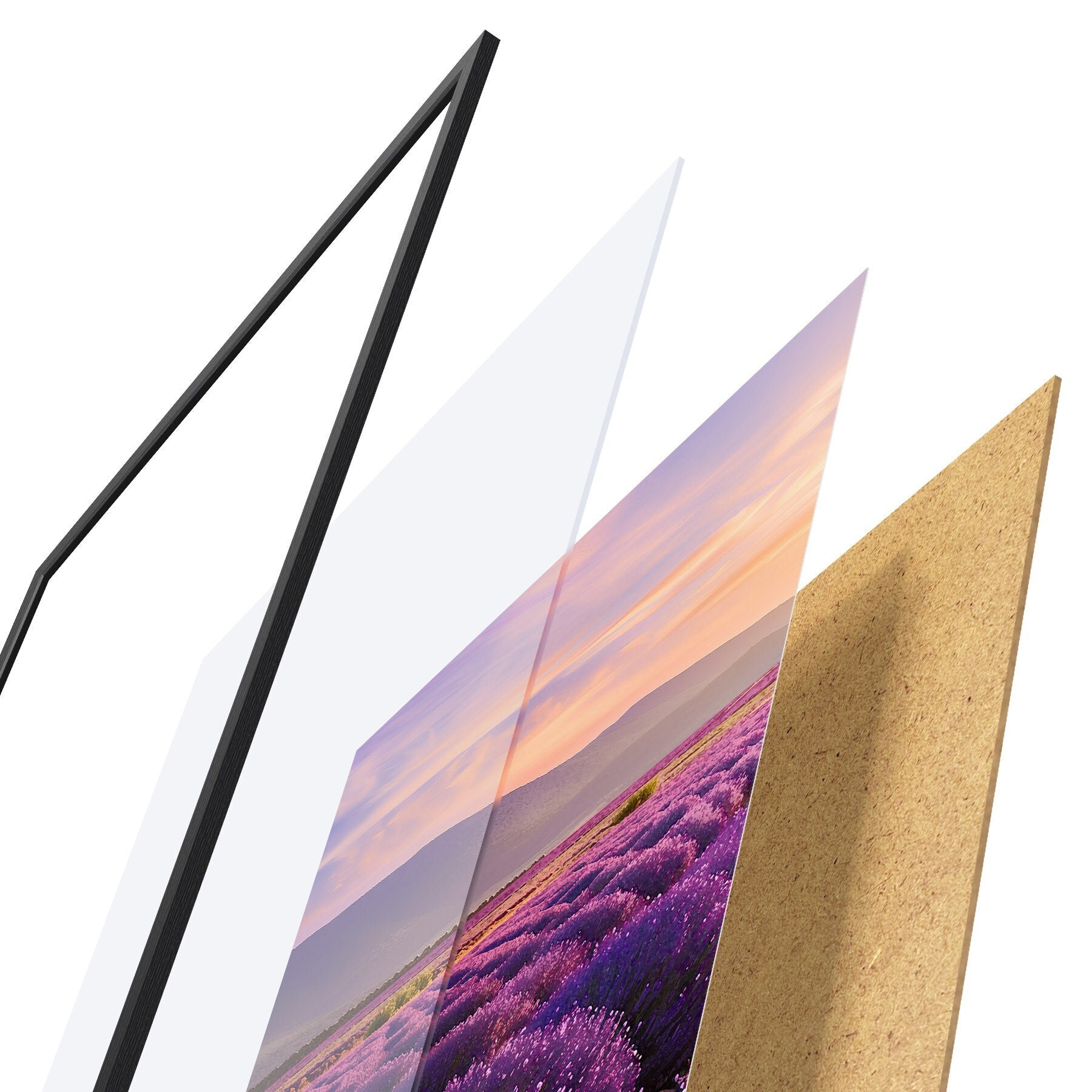 Постер складається з рами, оргскла, надрукованого зображення та підкладки з ДСП. Завдяки кріпленням на звороті плакат можна одразу ж повісити на стіну.