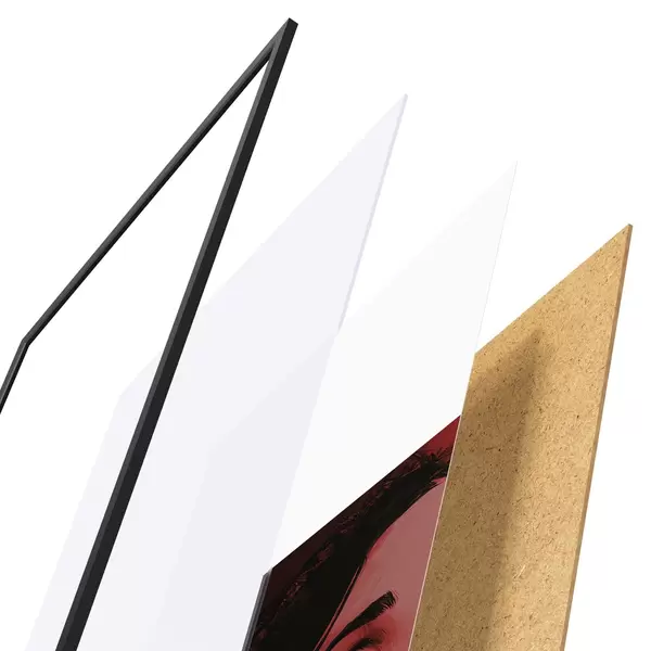 Постер складається з рами, оргскла, надрукованого зображення та підкладки з ДСП. Завдяки кріпленням на звороті плакат можна одразу ж повісити на стіну.