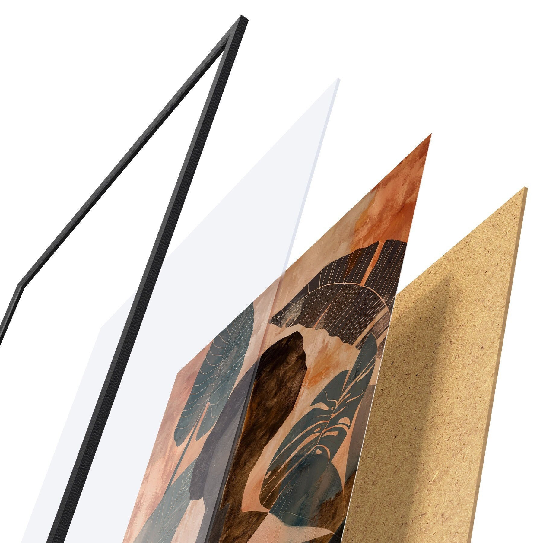 Постер складається з рами, оргскла, надрукованого зображення та підкладки з ДСП. Завдяки кріпленням на звороті плакат можна одразу ж повісити на стіну.
