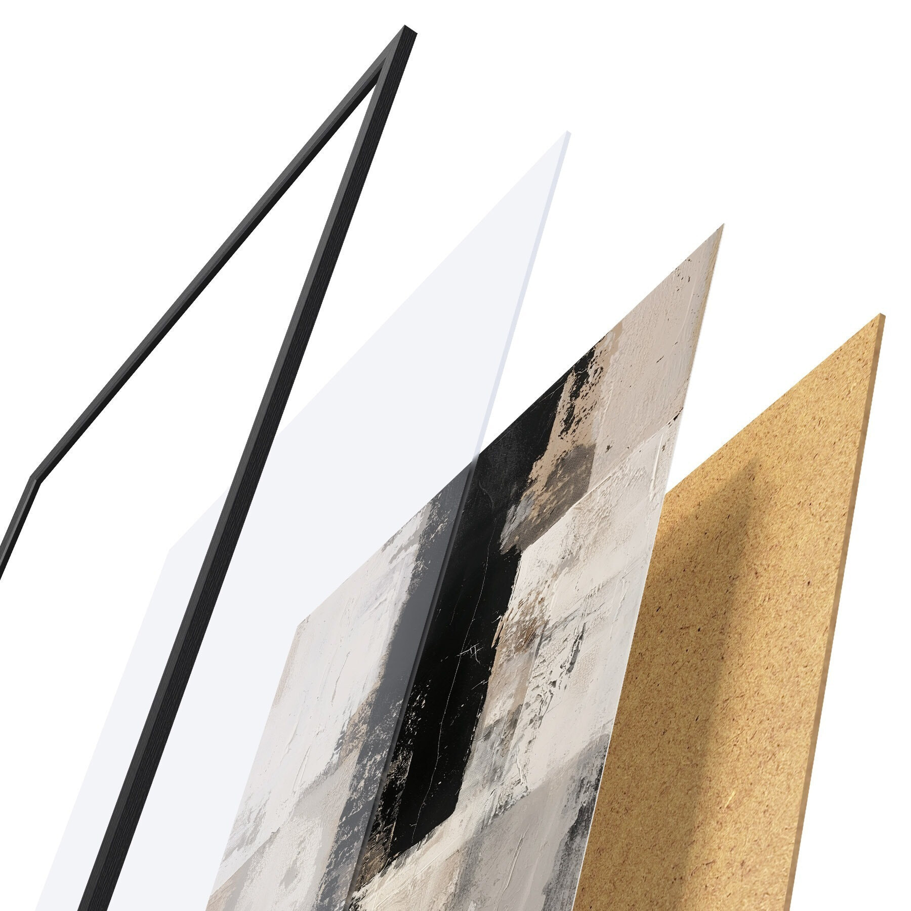 Постер складається з рами, оргскла, надрукованого зображення та підкладки з ДСП. Завдяки кріпленням на звороті плакат можна одразу ж повісити на стіну.