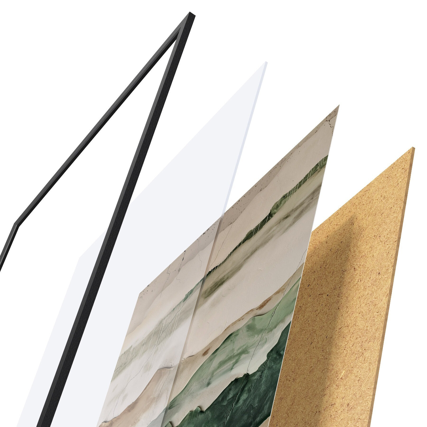 Постер складається з рами, оргскла, надрукованого зображення та підкладки з ДСП. Завдяки кріпленням на звороті плакат можна одразу ж повісити на стіну.
