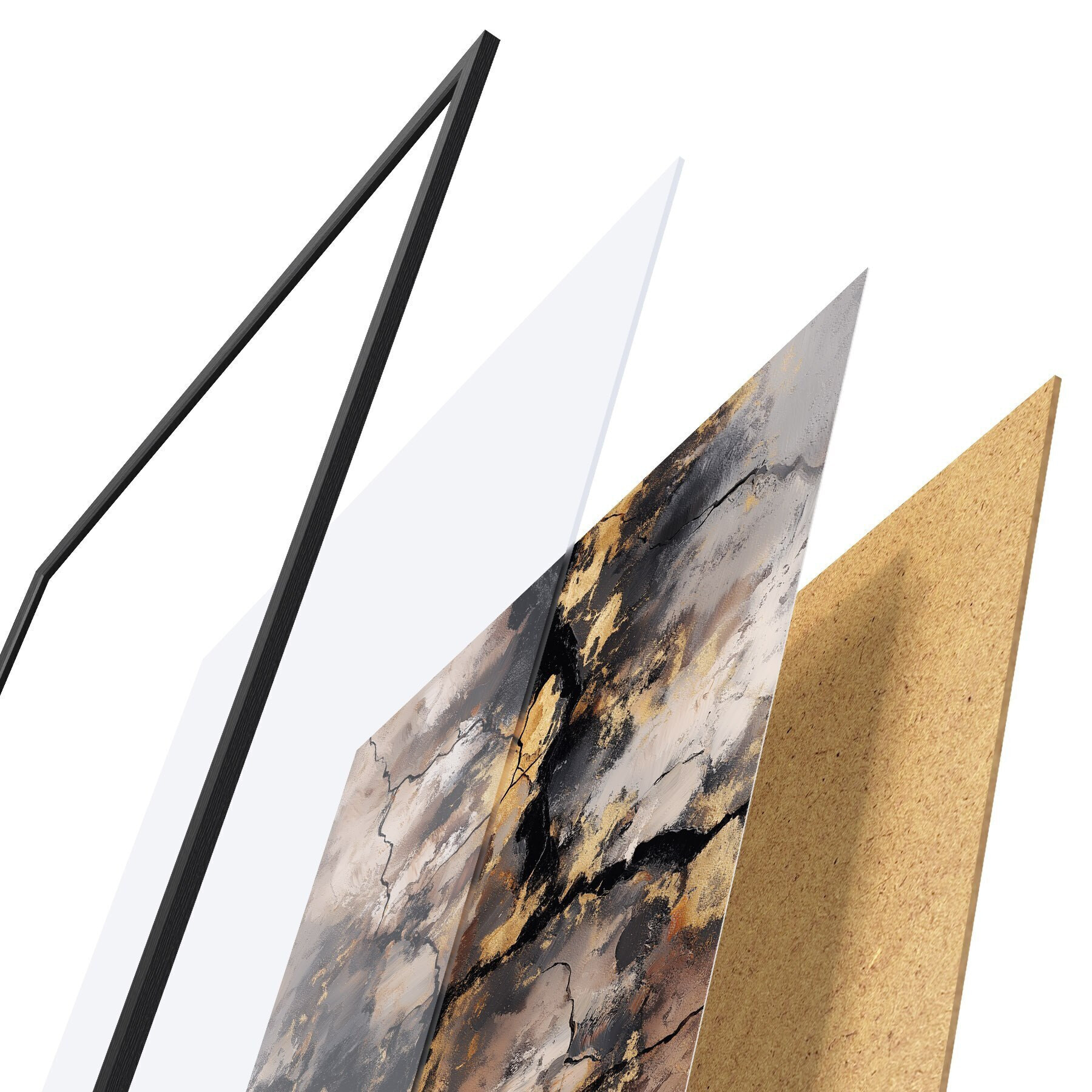 Постер складається з рами, оргскла, надрукованого зображення та підкладки з ДСП. Завдяки кріпленням на звороті плакат можна одразу ж повісити на стіну.