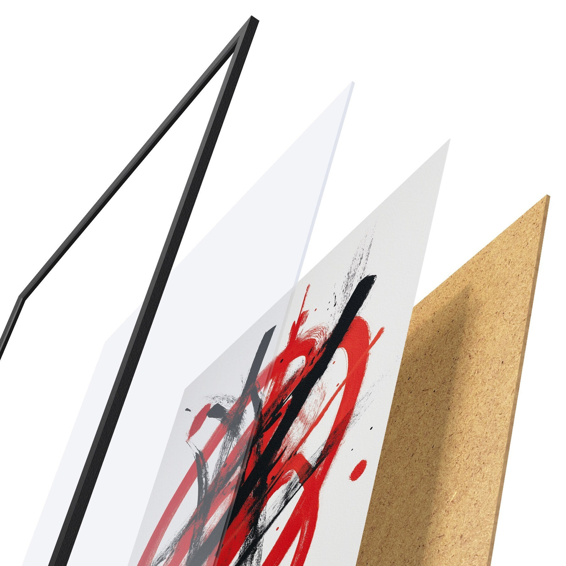 Постер складається з рами, оргскла, надрукованого зображення та підкладки з ДСП. Завдяки кріпленням на звороті плакат можна одразу ж повісити на стіну.