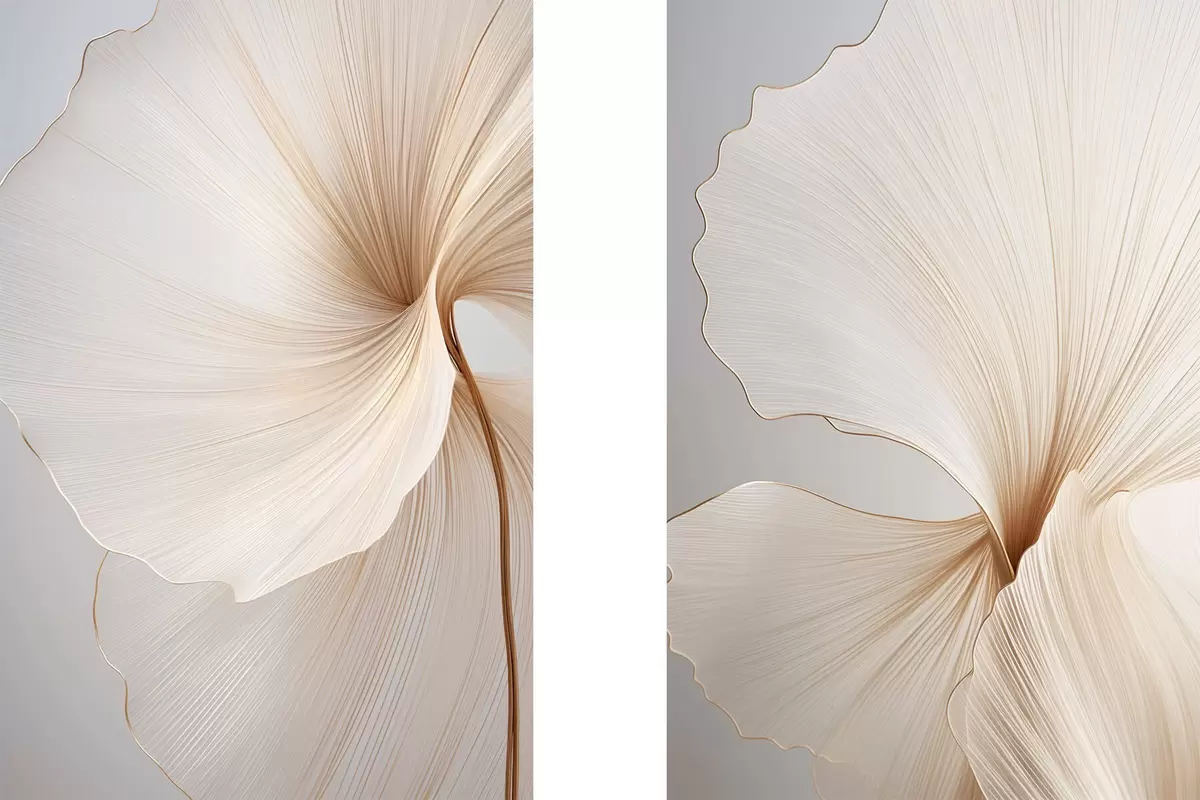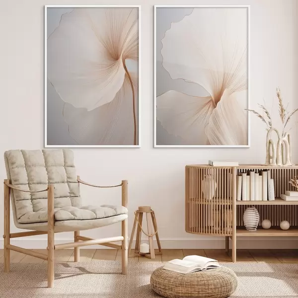 Постер на стіну Абстрактні квіти з тонкими, ніжними пелюстками в відтінках білого та бежевого кольорів Nr d00817