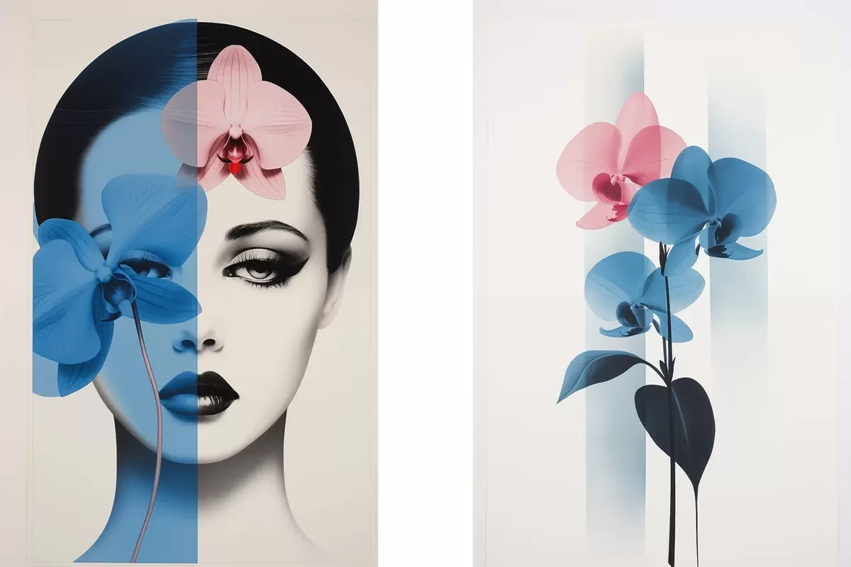 Постер на стіну Абстрактний портрет жінки з орхідеями Nr d00818