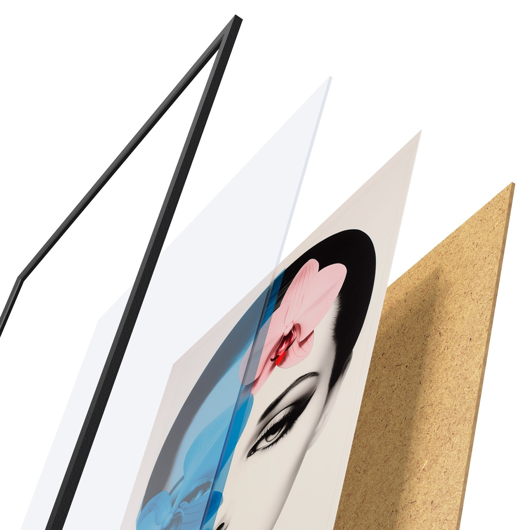 Постер складається з рами, оргскла, надрукованого зображення та підкладки з ДСП. Завдяки кріпленням на звороті плакат можна одразу ж повісити на стіну.