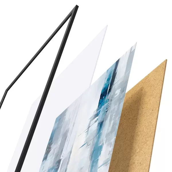 Постер складається з рами, оргскла, надрукованого зображення та підкладки з ДСП. Завдяки кріпленням на звороті плакат можна одразу ж повісити на стіну.