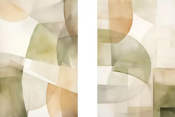 Постер на стіну Абстрактні геометричні фігури з текстурою акварелі в відтінках зеленого, коричневого та бежевого кольорів Nr d00820