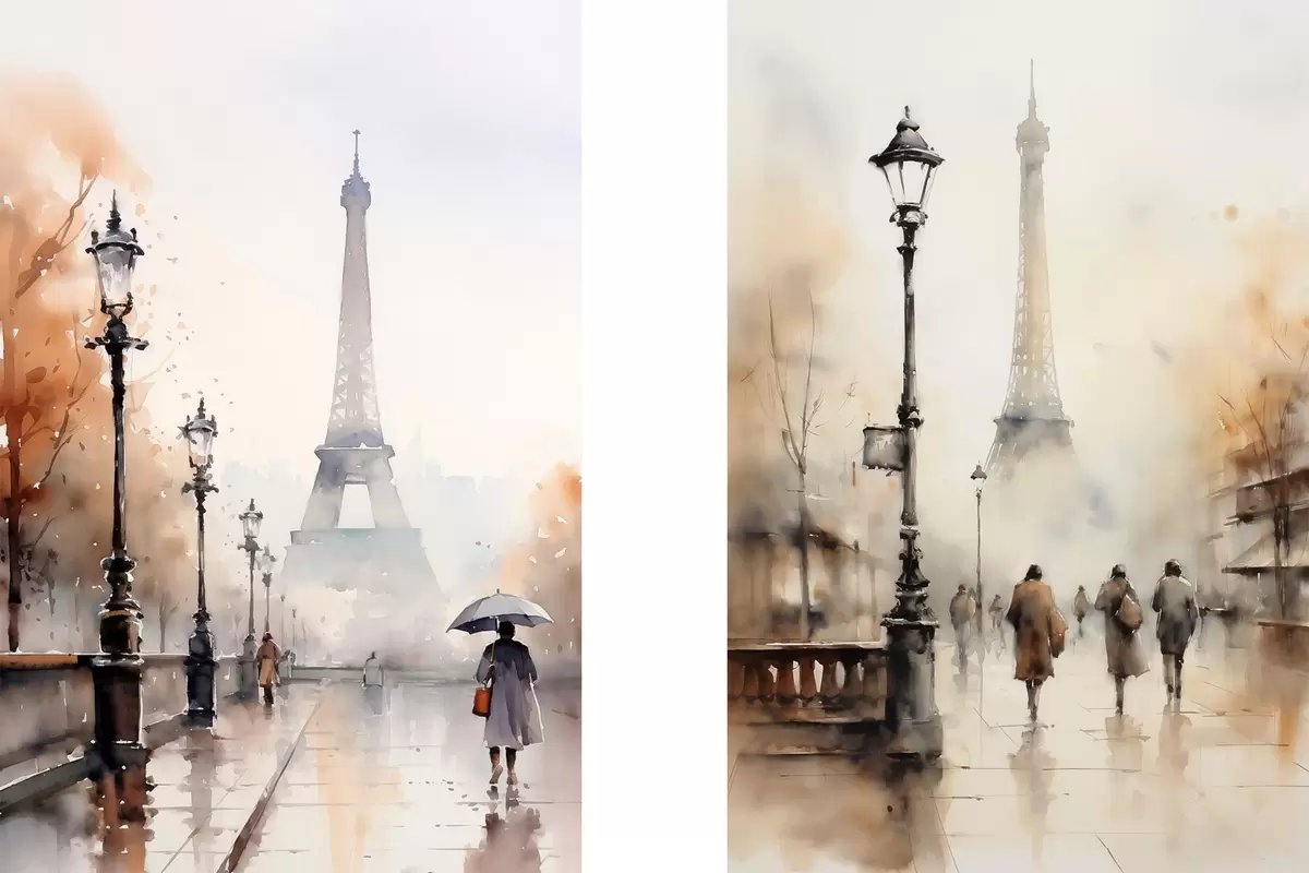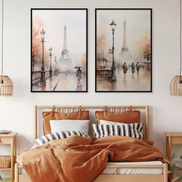 Постер на стіну Дощовий осінній день у Парижі з Ейфелевою вежею на задньому плані та старовинними вуличними ліхтарями Nr d00821