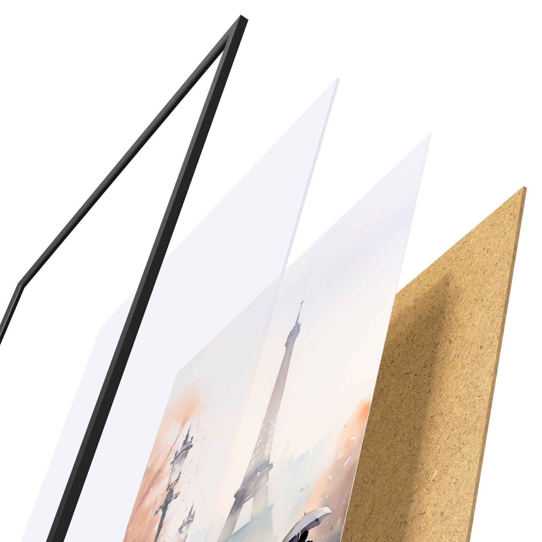 Постер складається з рами, оргскла, надрукованого зображення та підкладки з ДСП. Завдяки кріпленням на звороті плакат можна одразу ж повісити на стіну.