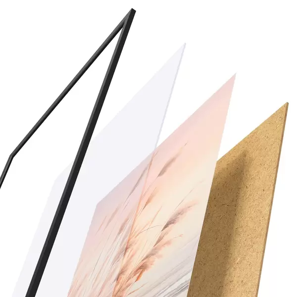 Постер складається з рами, оргскла, надрукованого зображення та підкладки з ДСП. Завдяки кріпленням на звороті плакат можна одразу ж повісити на стіну.