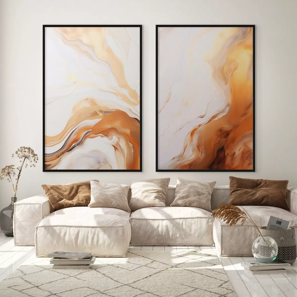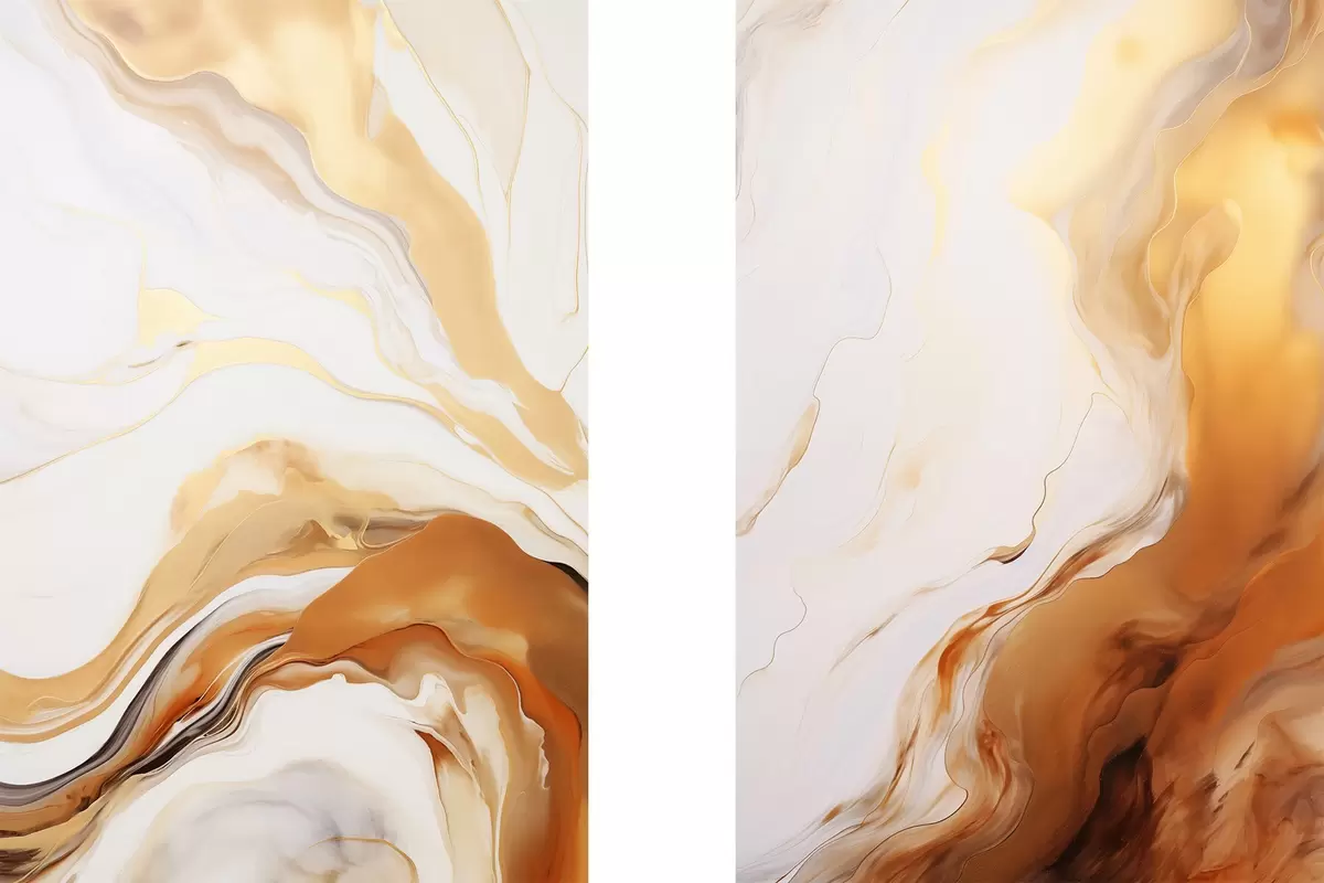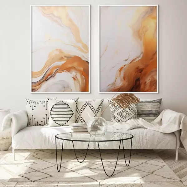 Постер на стіну Абстрактна імітація живопису білими та помаранчевими кольорами, флюїдне мистецтво з хвилястими лініями, сучасне мистецтво Nr d00825