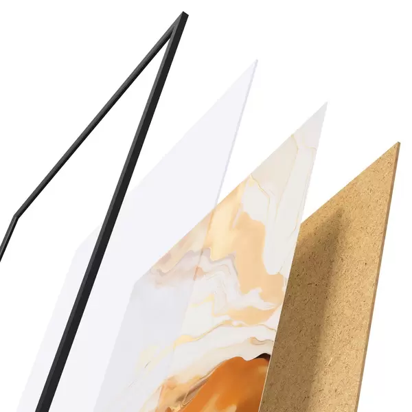 Постер складається з рами, оргскла, надрукованого зображення та підкладки з ДСП. Завдяки кріпленням на звороті плакат можна одразу ж повісити на стіну.