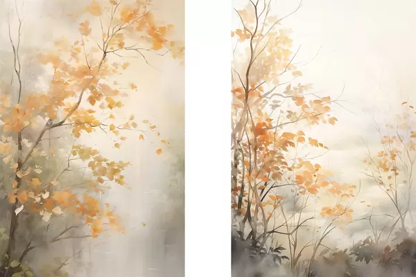 Постер на стіну Осінні дерева з помаранчевим листям і гілками, м'який акварельний стиль, ніжні мазки пензлем Nr d00826