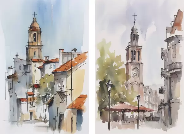 Постер на стіну Імітація міського пейзажу аквареллю Nr d00832